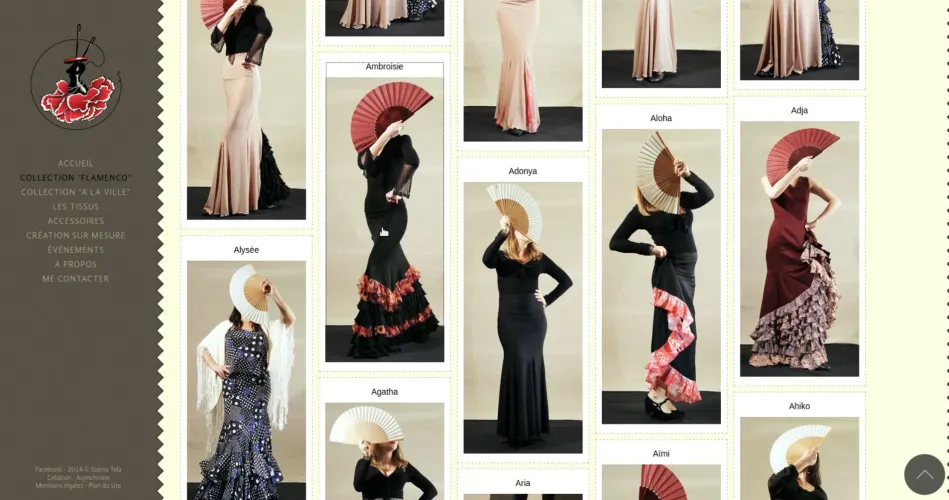 Design complet et développement de la galerie de tous les vêtements et autres costumes de flamenco. Vues associées aux termes de la taxonomie pour choisir les modèles souhaités.